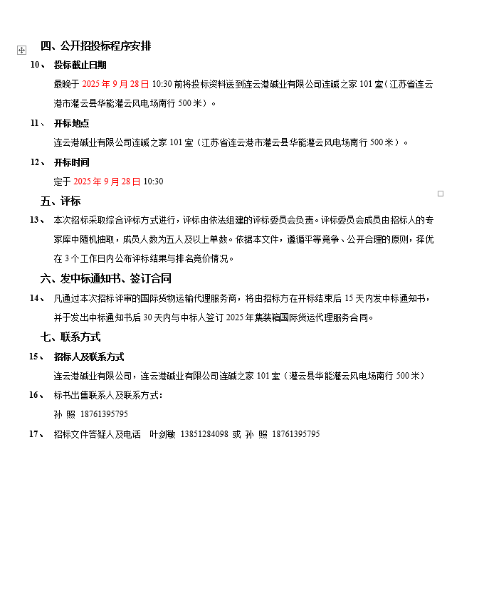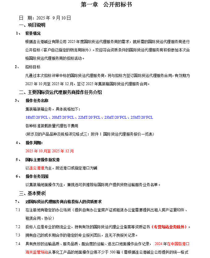 連云港堿業(yè)有限公司集裝箱國際貨運代理服務商項目招標公告