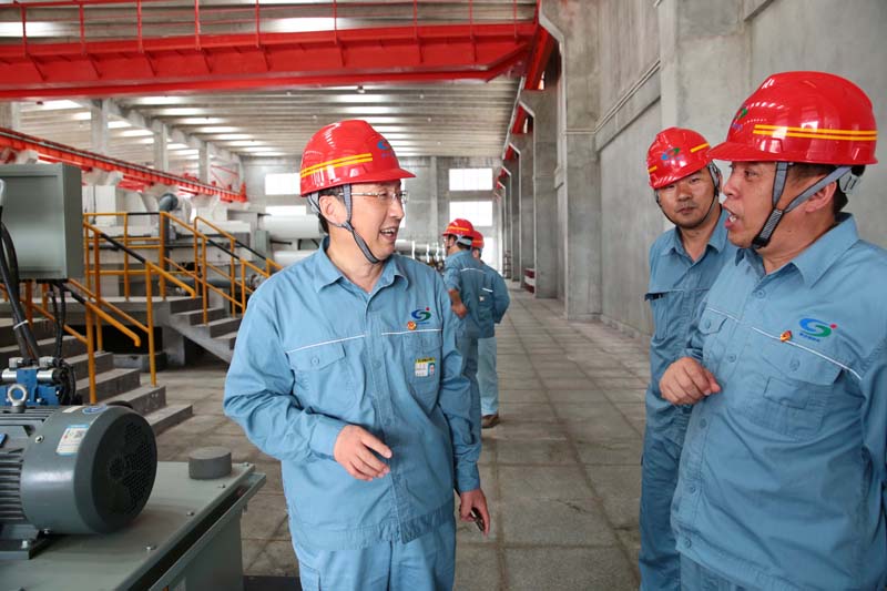 5月16日上午,公司黨委書記、董事長(zhǎng)張衛(wèi)民,黨委副書記、總經(jīng)理李清菊,黨委委員、副總經(jīng)理黃建華,黨委委員、副總經(jīng)理焦旺盛等一行到渣處理車間指導(dǎo)工作。
