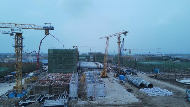 ⑸合成氨二標段271原料煤儲運破碎樓三層澆筑;#1轉(zhuǎn)運站五層腳手架搭設,鋼筋綁扎;#2轉(zhuǎn)運站三層腳手架、模板拆除,四層腳手架搭設,鋼筋綁扎,支模;汽車卸煤區(qū),煤筒倉外側(cè)土方土方挖取,圍檁安裝;820合成氨循環(huán)水站清凈廢水池鋼板樁拔除;塔下水池1支撐架搭設,鋼筋綁扎;塔下水池2支撐架搭設,對拉螺栓割除;吸水池1基坑開挖準備;711煤漿制備二層腳手架搭設,梁板柱支模,鋼筋綁扎,埋件安裝;762壓縮機廠房基礎短柱防腐;剩余設備基礎鋼筋綁扎,模板支設;763空分后備系統(tǒng)上部結構鋼筋綁扎,預埋件安裝,支模;764儀表空壓站基礎墻防腐;831空分變電所首層結構鋼筋綁扎,埋件安裝,支模;761冷箱基礎冷箱設備帶板拼接施工;膨脹機房上部結構鋼筋綁扎預埋螺栓安裝;712氣化框架立柱腳手架搭設,鋼筋綁扎;灌注樁施工;樁基大小應變檢測;基坑開挖準備;塔吊附近承臺基坑回填;842空分機柜間板墻鋼筋綁扎;713渣水處理集渣池支撐架搭設,鋼筋綁扎,支模;設備基礎錨固鋼筋焊接。