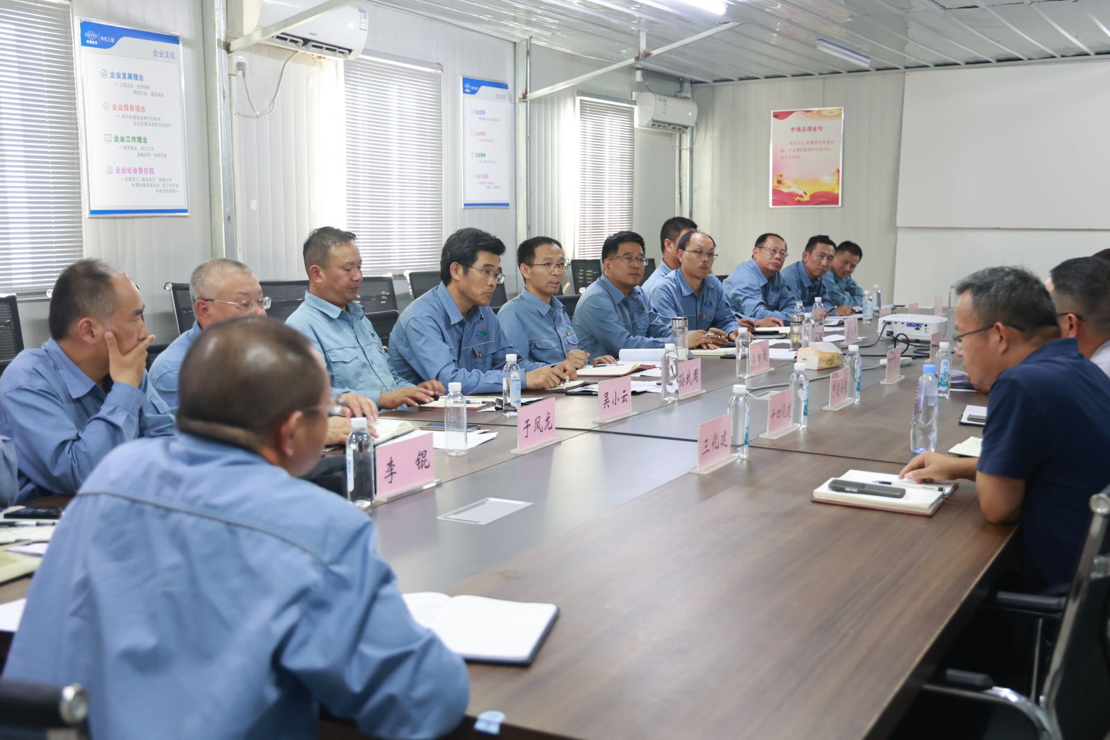 公司搬遷項目部指揮部有關(guān)成員及監(jiān)理公司負責人和6個主標段項目經(jīng)理參加了會議。監(jiān)理公司和項目經(jīng)理就工程施工完成情況、遺留尾項施工計劃等情況進行了匯報。